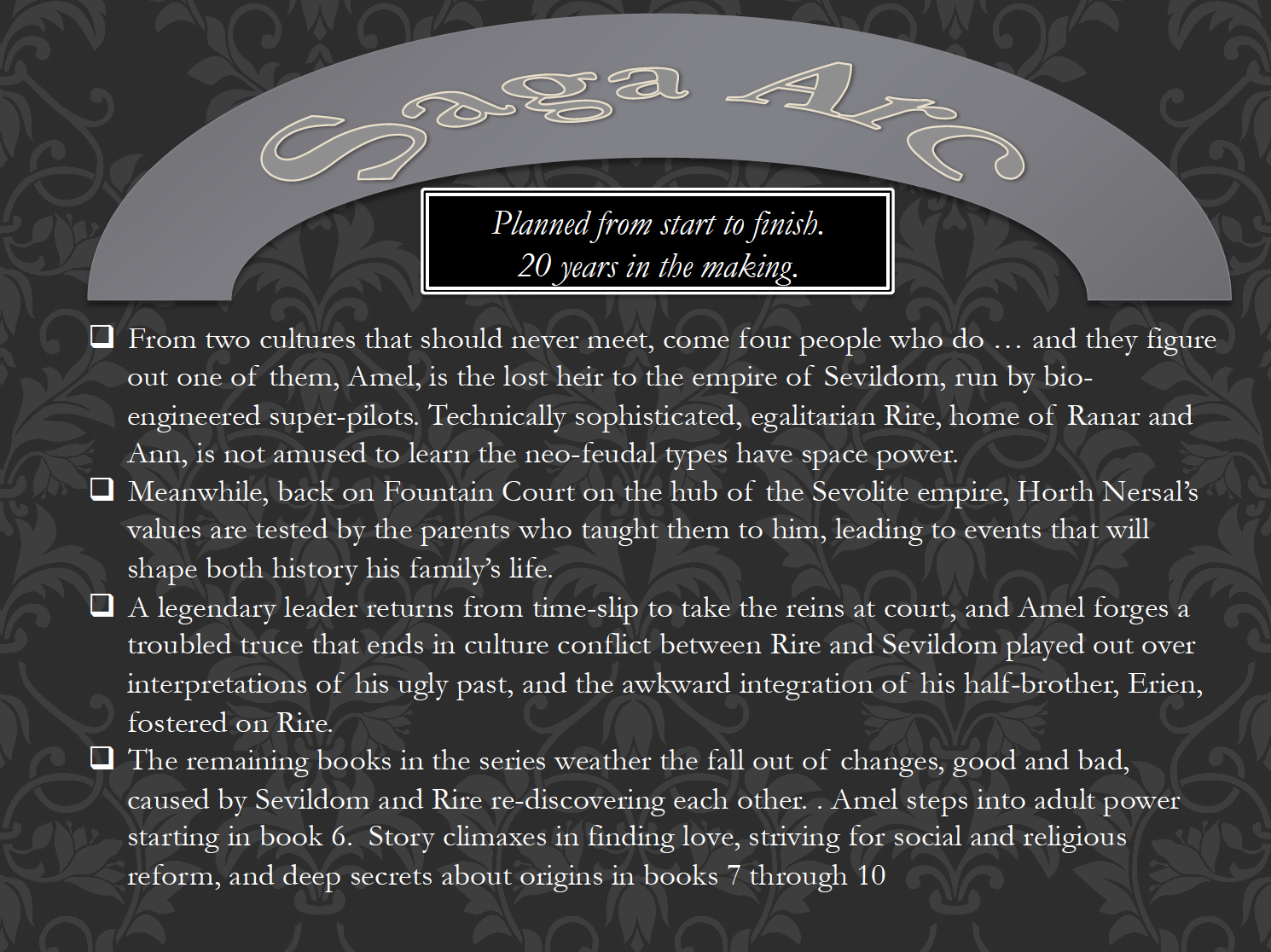 From a series of slides presenting a visual introduction to the 10-novel Okal Rel Saga.