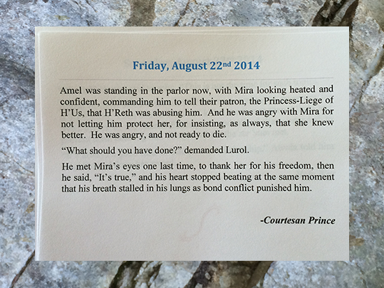 This entry was posted in Reading and tagged Amel Dem'Vrel, Part 1 The Courtesan Prince, quote. Bookmark the permalink.