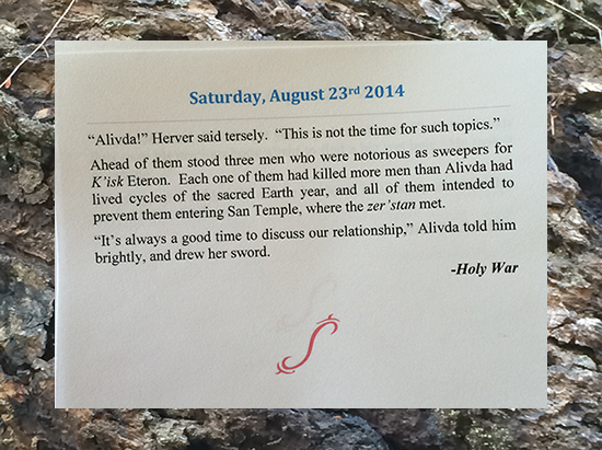This entry was posted in Reading and tagged Alivda D'Ander D'Aur Lor'Vrel, Lynda Williams, Part 9: Holy War, quote. Bookmark the permalink.